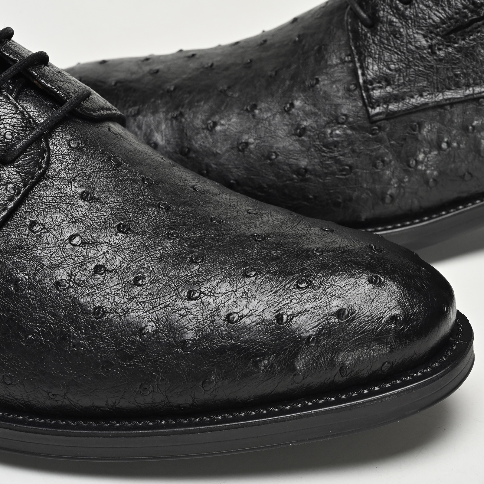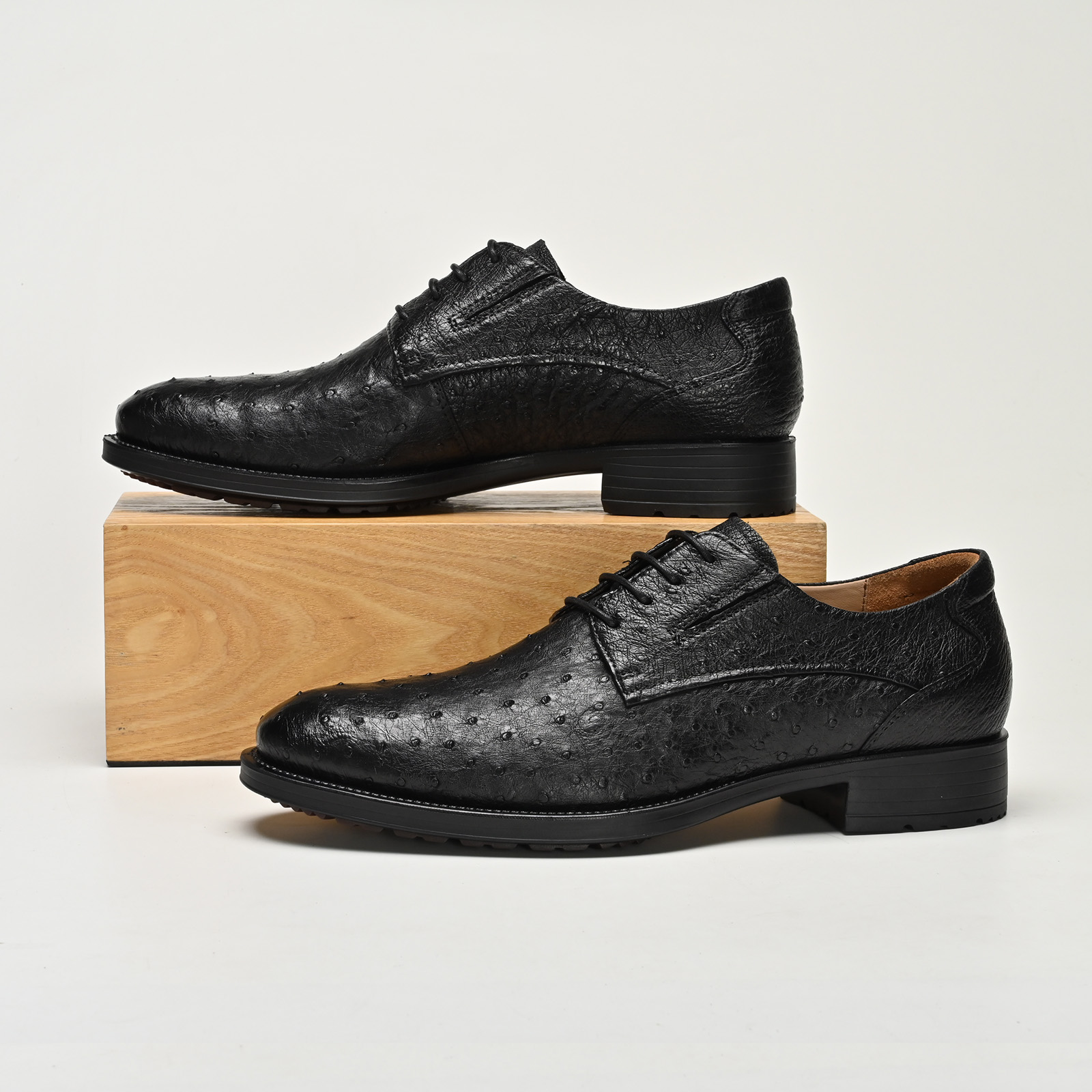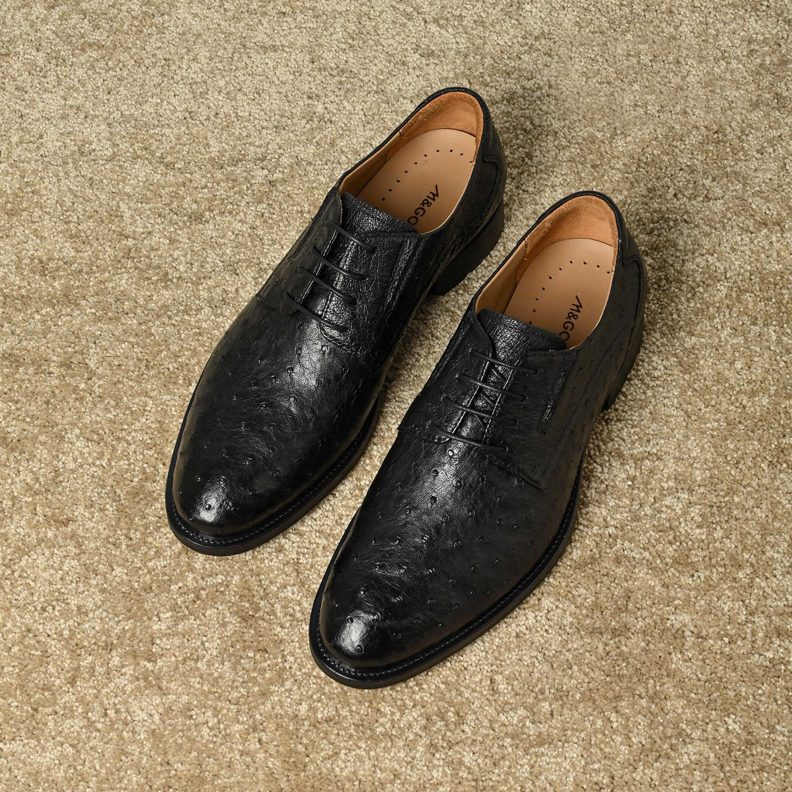 尊贵经典驼鸟皮英伦风复古德比正装男鞋M82305男士真皮系带黑色
